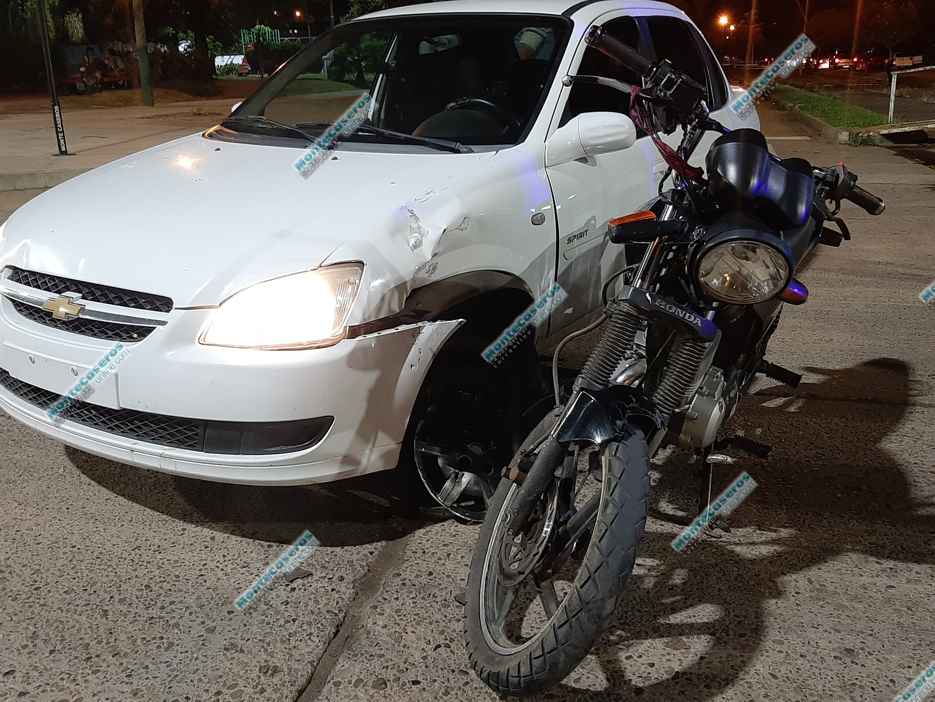 Aproximadamente a las 22:00 horas de este domingo 2 de enero, en la intersección de Eva Duarte de Perón y España se registró un accidente de tránsito entre un automóvil y una motocicleta.
