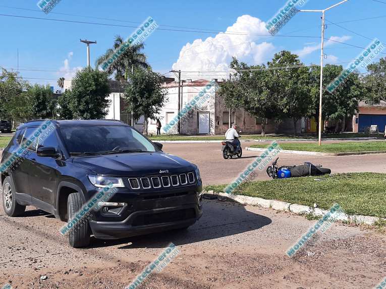 Una camioneta Jeep chapa patente AE 482 LV y una motocicleta 125 CC. se vieron involucrados en un accidente de tránsito que se dio en el cruce de Juan Pujol y Salta en la tarde de este lunes.