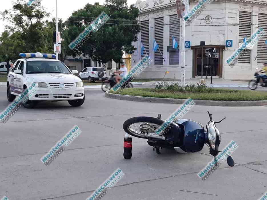 Aproximadamente a las 18:30 de este domingo 31 de octubre, en la intersección de Eva Duarte de Perón y Pellegrini se registró un accidente de tránsito entre un automóvil y una motocicleta.