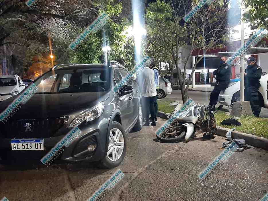 Aproximadamente a las 21:30 horas se registró un accidente de tránsito entre un automóvil y una motocicleta.