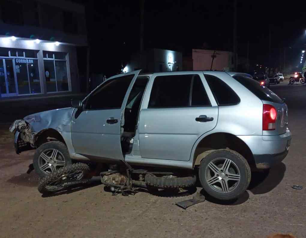 Un automóvil Volkswagen Gol chapa patente FUV 833 en el que circulaba Sergio Gustavo Galiano de 45 años y una motocicleta Corven 150 conducida por un menor de 16 años fueron los protagonistas del fuerte impacto.