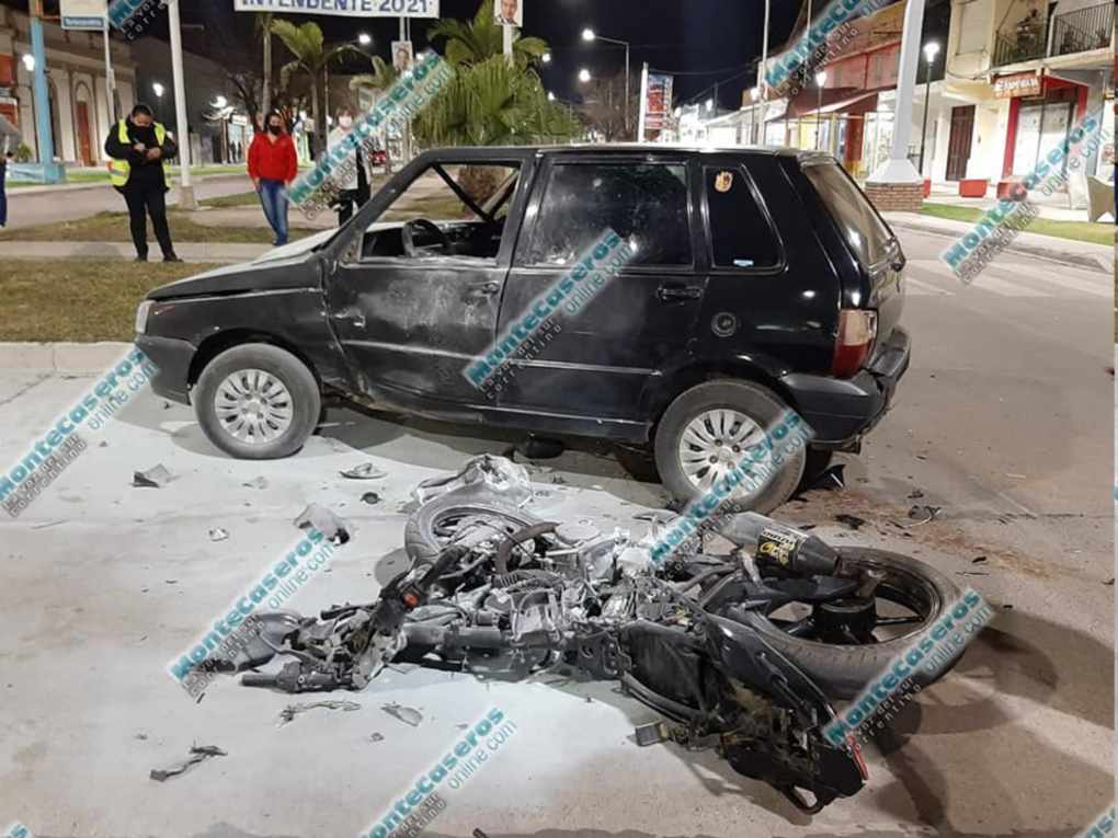 Aproximadamente a las 21:30 horas de este sábado 14 de agosto en la intersección de Eva Duarte de Perón y Perelló tuvo lugar un fuerte choque el cual involucró a un automóvil y a una motocicleta.