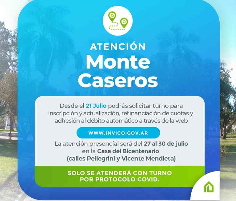 Desde hoy, 21 de julio, podrás solicitar turnos para inscripción y actualización, refinanciación de cuotas y adhesión al débito automático a través de web https://www.invico.gov.ar/visitas/Turn...