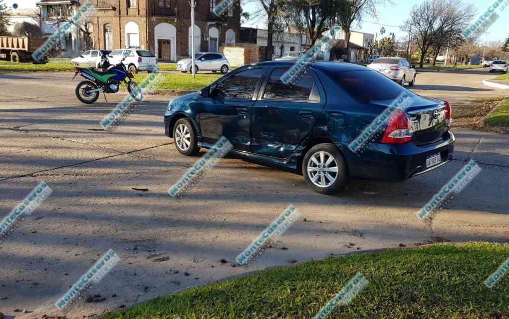 Un automóvil Peugeot 206 dominio GSJ 498 conducido por Cinthia Dalzotto de 27 años de edad y un Toyota Etios chapa patente AB903VG en el que circulaba una femenina mayor de edad Daniela Alejandra protagonizaron un choque, el hecho sucedió en la intersección de calles Vicente Mendieta y Tucumán. Producto del impacto ambos rodados presentaron daños materiales.