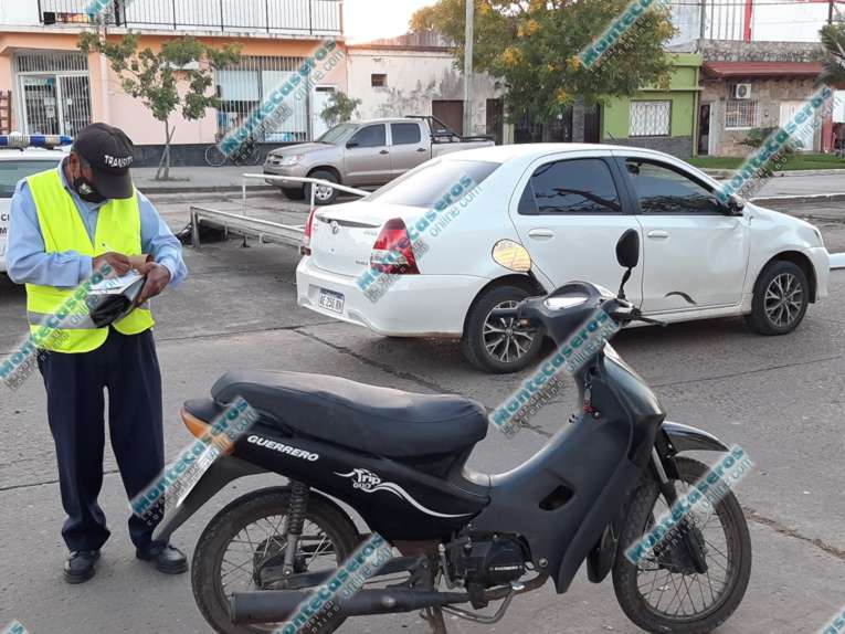 Un automóvil Toyota Etios chapa patente AE 250 RN en el que transitaba Juan Silva y una motocicleta Guerrero Trip 110 CC dominio A 11 OJEG en la que circulaba un joven de apellido Vallejos, fueron los protagonistas del impacto.