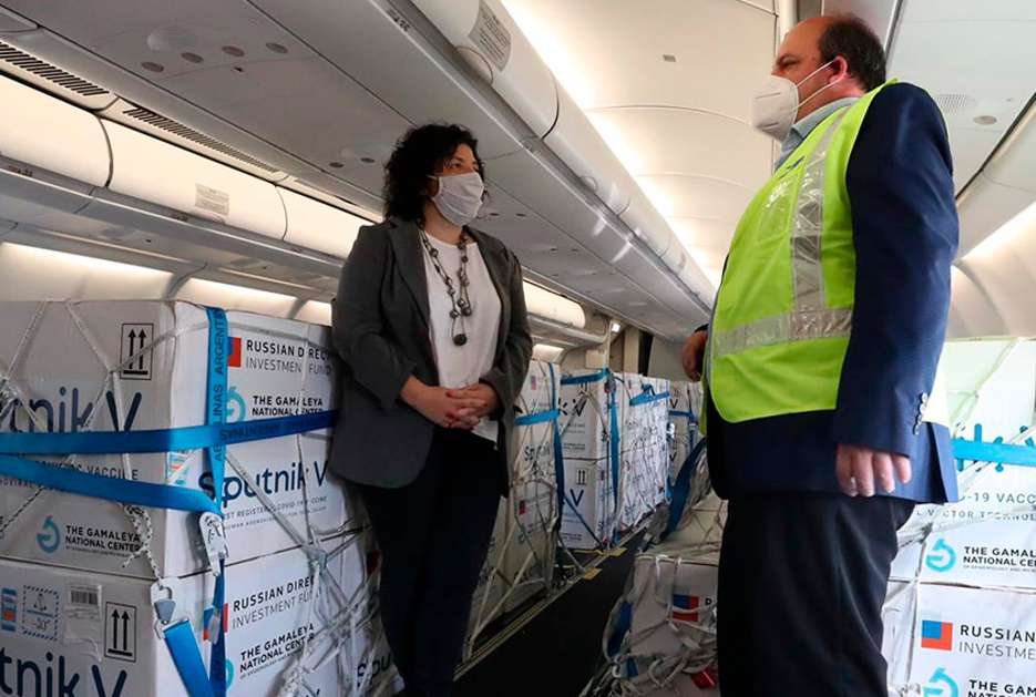 El vuelo fue recibido por la ministra de Salud, Ca...