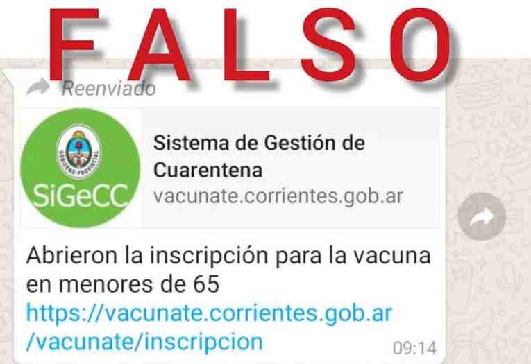 Ante la difusión de rumores e imágenes apócrifas en redes sociales, el Gobierno aclara que no está habilitada la inscripción de menores de 65 años para las vacunas contra el Covid-19.