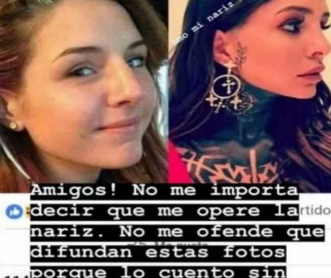 "¡Amigos! No me importa decir que me operé la nariz. No me ofende que difundan estas fotos porque lo cuento sin problema. Buen sábado", lanzó Lelé.