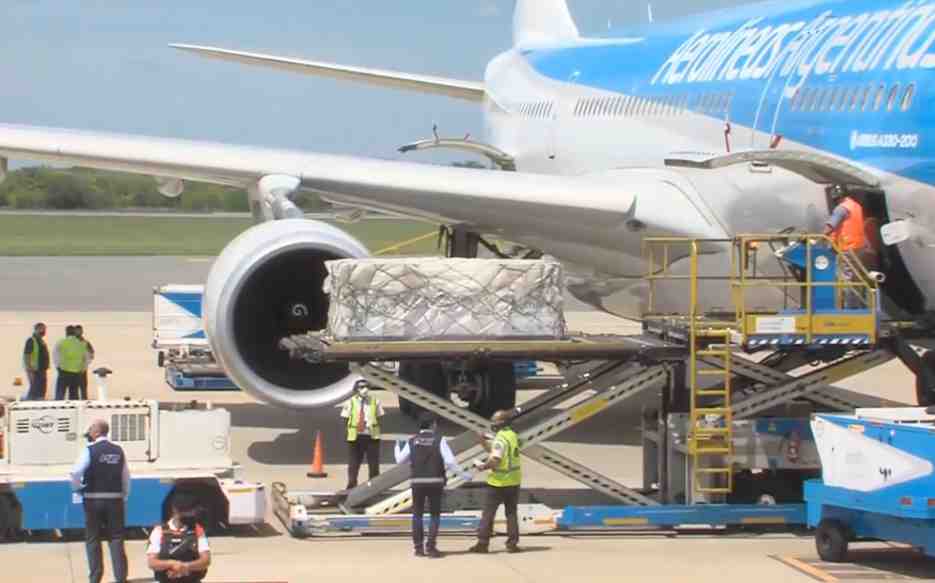 Llegó el avión de Aerolíneas con la segunda tanda de 300.000 dosis de la vacuna Sputnik V