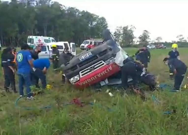 Una ambulancia de Mocoretá volcó a 12 km de la ciudad de Mercedes