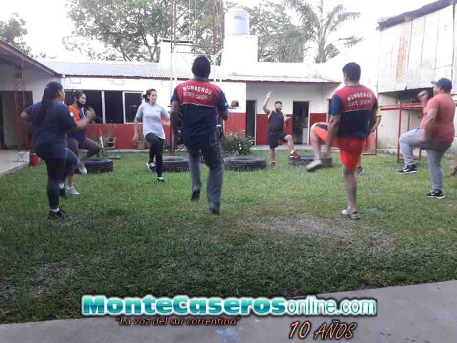 Bomberos Voluntarios de Monte Caseros realizan entrenamientos físicos, para así mejorar el rendimiento en el servicio que prestan a la comunidad.