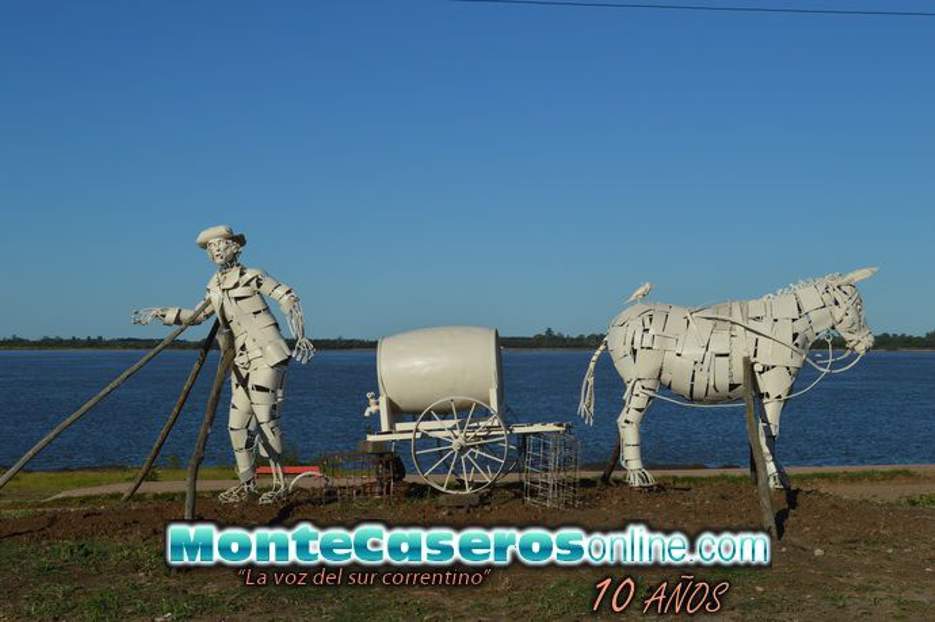 La escultura homenaje al aguatero es una nueva obra del artista local Matías Astarloa, la misma fue colocada durante la jornada de este jueves, en la rotonda diseñada y construida tiempo atrás por Personal del área de Mejoras y Mantenimiento de Espacios Públicos y de Obras de la Municipalidad.