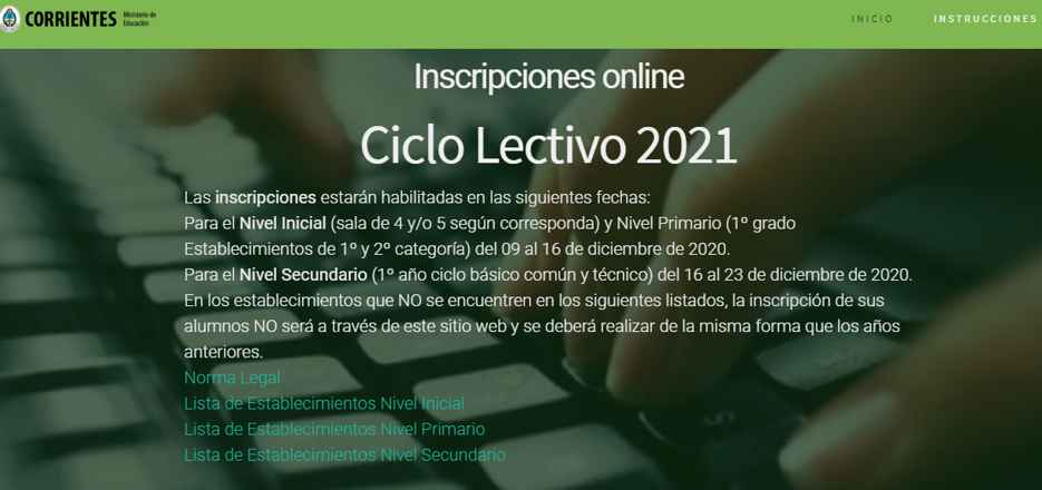 El Ministerio de Educación de Corrientes informó que a partir de este miércoles estará habilitada la página de las inscripciones escolares online para el ciclo lectivo 2021.