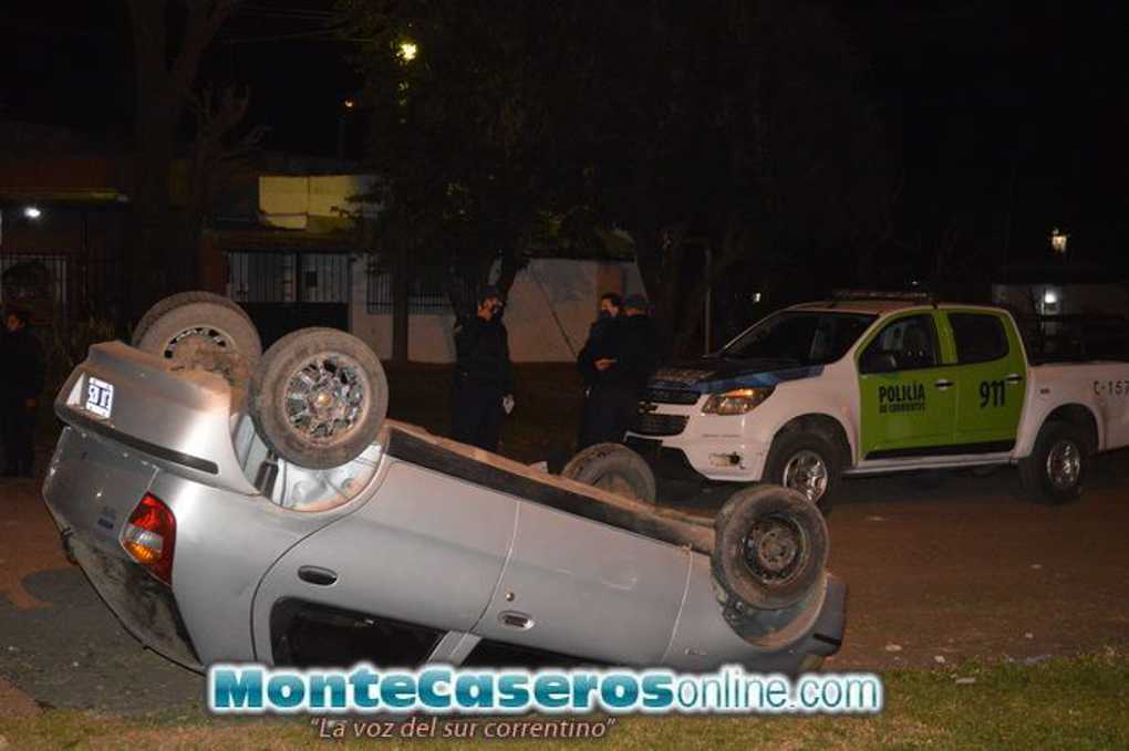Un automóvil Fiat Palio chapa patente EJT 825 en el que se trasladaba un masculino mayor de edad acompañado por un menor, por razones que se desconoce volcó. El hecho tuvo lugar en calle General Paz casi Rivadavia.