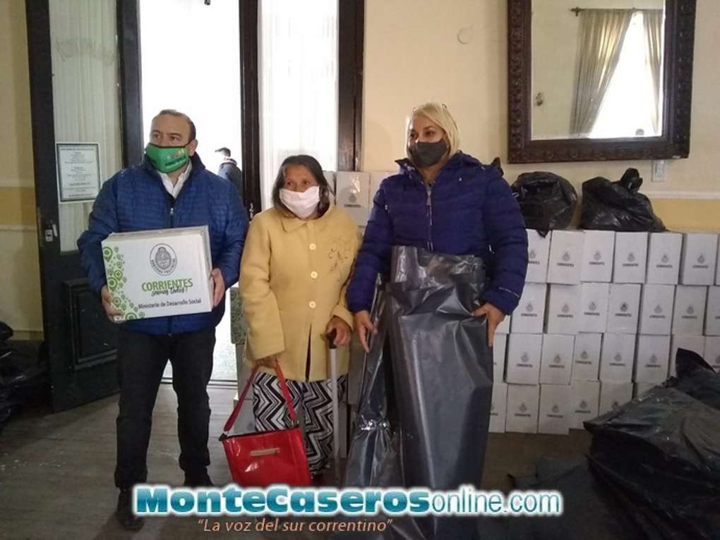 En horas de la mañana de este miércoles, 12 de agosto, en el Salón Dorado de la Municipalidad de Monte Caseros, con la visita del Director del Sector Ladrillero de Corrientes, Gustavo Ibarra, Karina Coppini referente provincial de agricultura familiar, hicieron entrega de las cajas de alimentos y cobertores a sus beneficiarios.