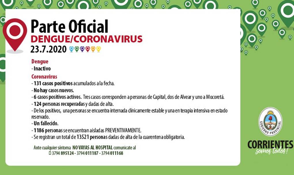 🔴Corrientes: no hubo nuevos casos de Coronavirus en las últimas 24 hs🔴