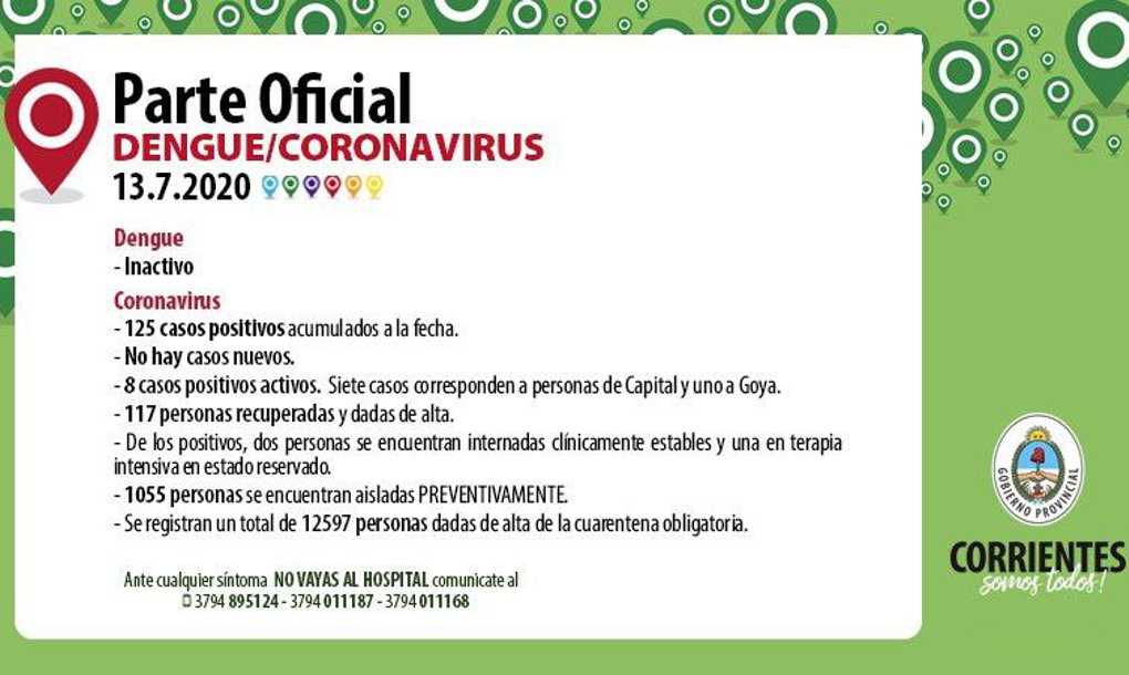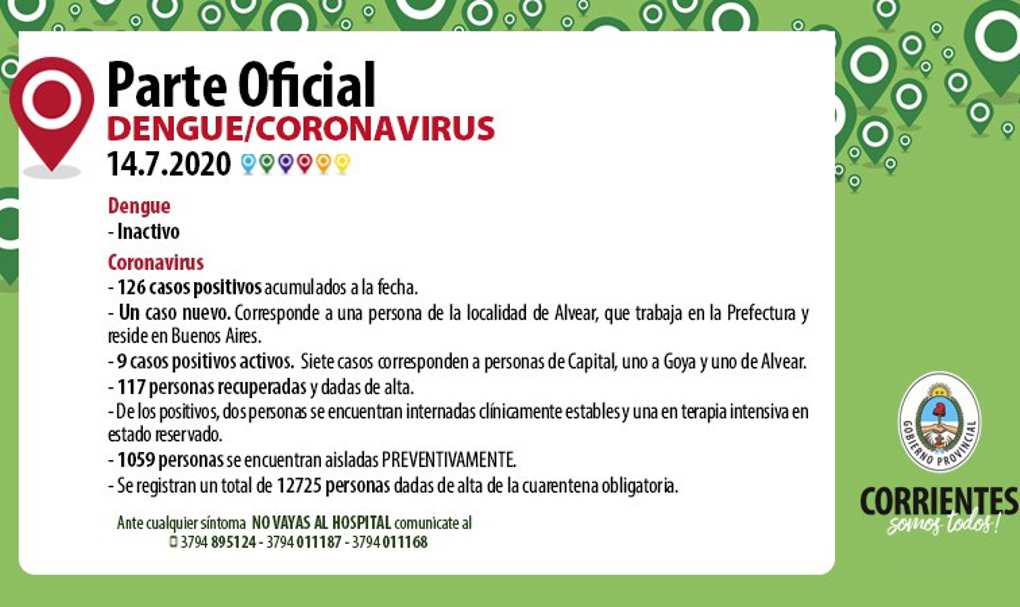 Continúan activos 9 casos positivos, siete casos corresponden a la capital, uno de Goya y uno de ...