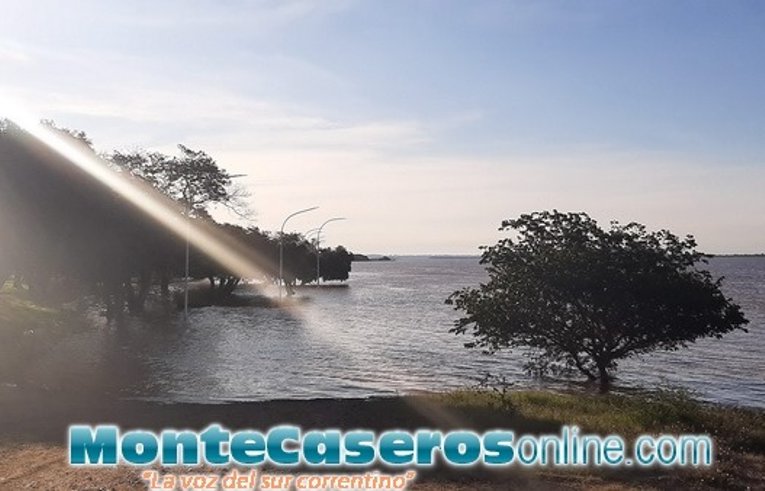 El sector norte de la costanera de Monte Caseros se encuentra con el paso interrumpido, dado a que el agua cortó la calle, en otros sectores roza el murallón y por otros lados la misma sobrepasó a la calle, pero sin cortar el camino.