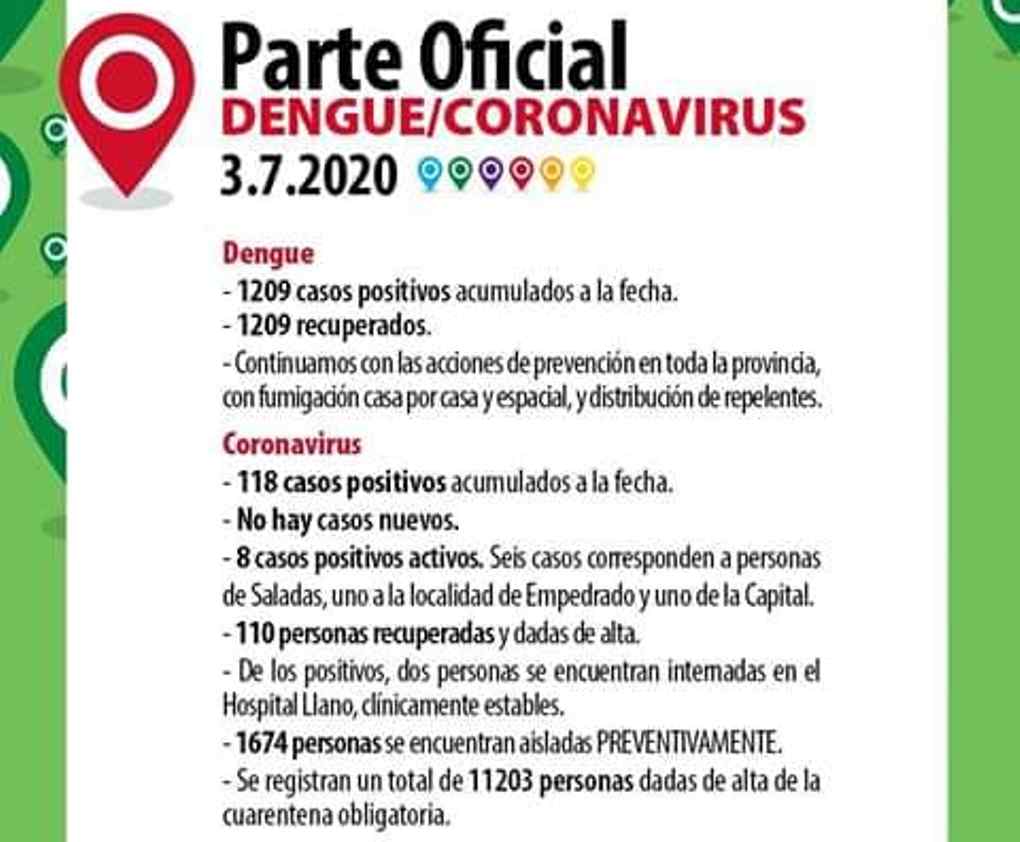 🔴Parte oficial: hay 8 casos activos de coronavirus en Corrientes🔴