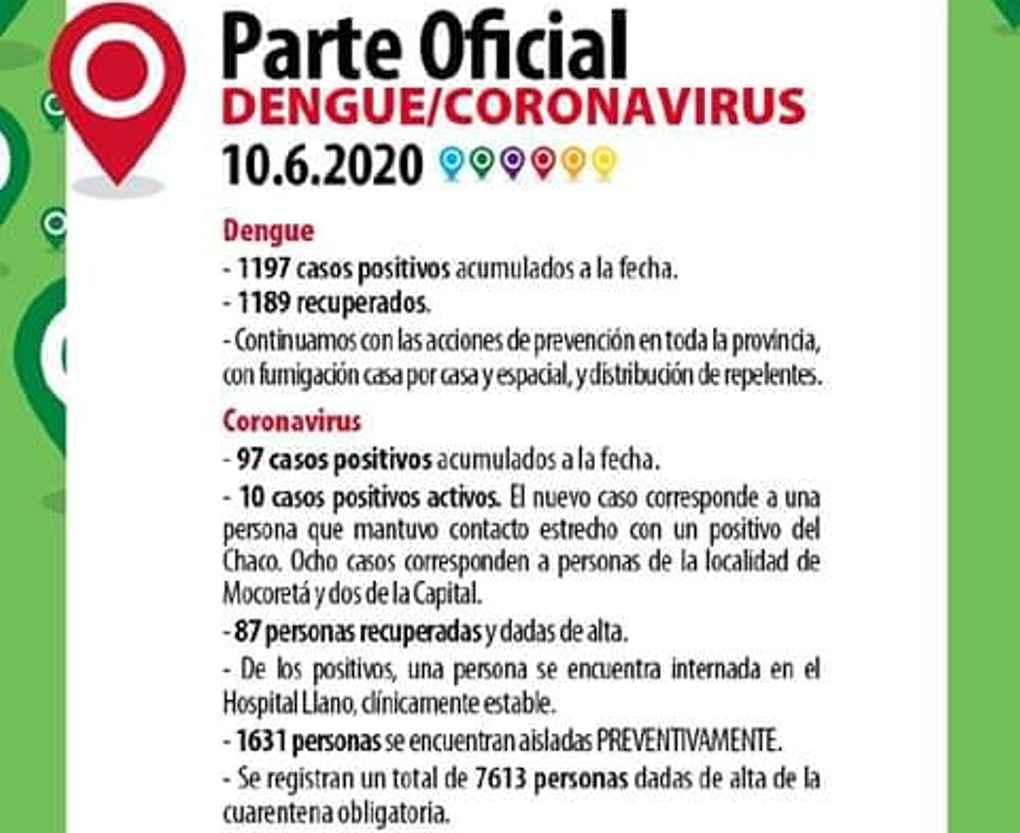 La Dirección del Hospital Samuel W. Robinson informó mediante el parte diario oficial el estado epidemiológico de coronavirus/dengue de la ciudad de Monte Caseros correspondiente al día de la fecha, miércoles 10 de junio de 2020.