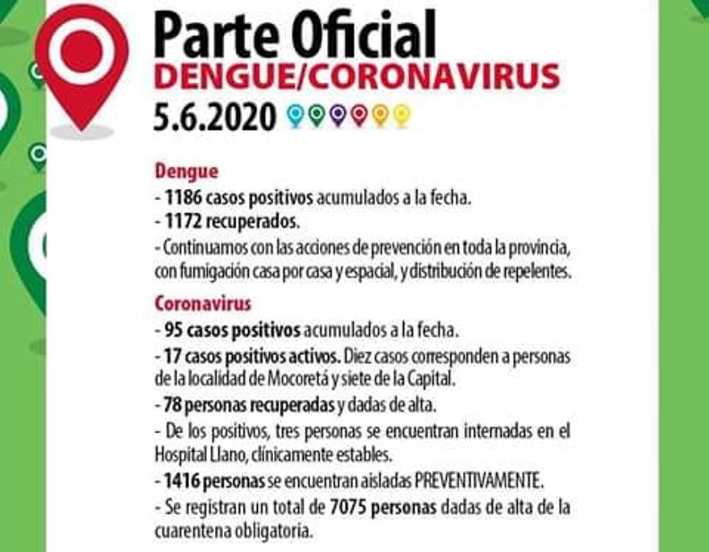 La Dirección del Hospital Samuel W. Robinson informó mediante el parte diario oficial el estado epidemiológico de coronavirus/dengue de la ciudad de Monte Caseros correspondiente al día de la fecha, jueves 4 de junio de 2020.