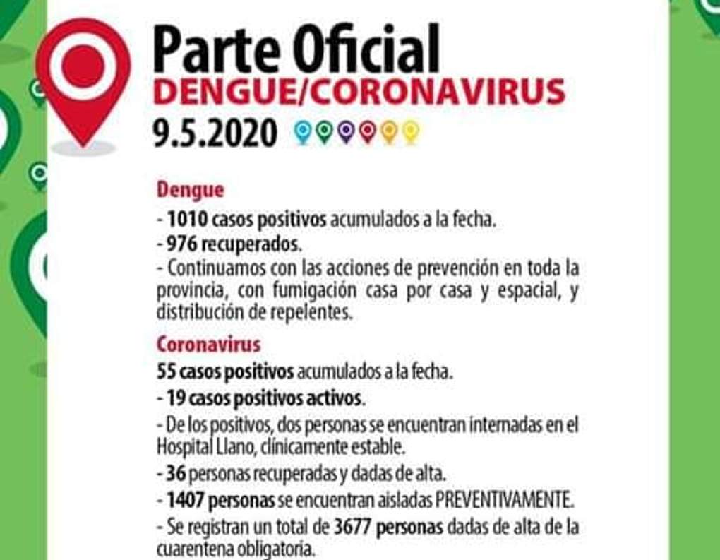 No hubo nuevos casos de Coronavirus y el Dengue alcanzó los 1010 positivos