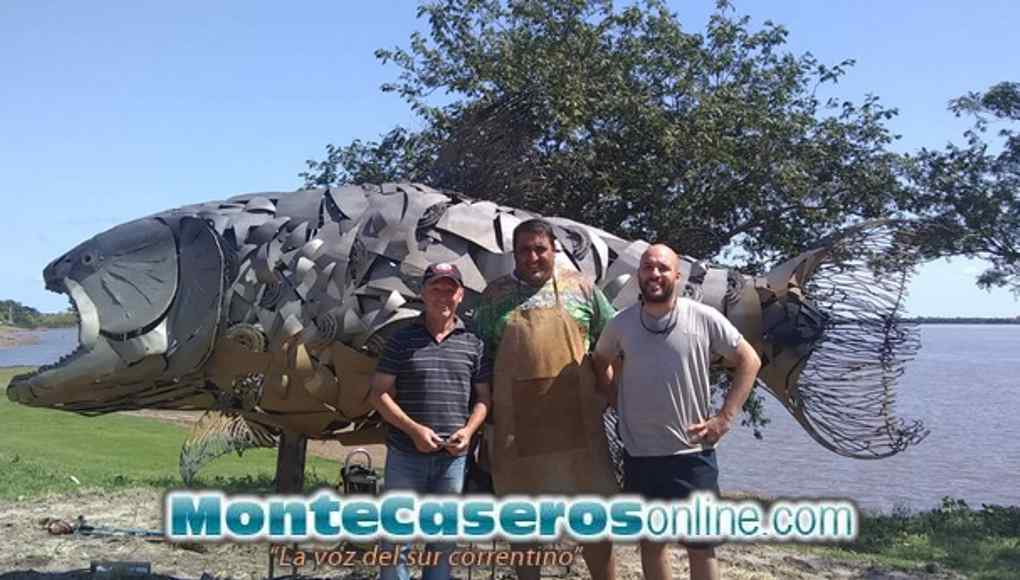 Fue emplazado en la zona de la costanera la nueva escultura del artista montecasereño Matías Astarloa "El Guardían del Río".