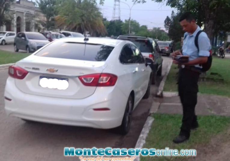 Agentes de tránsito aplicaron multa al conductor infractor que se estacionó en la esquina de Colón y Buenos Aires, obstruyendo el paso de una rampa.