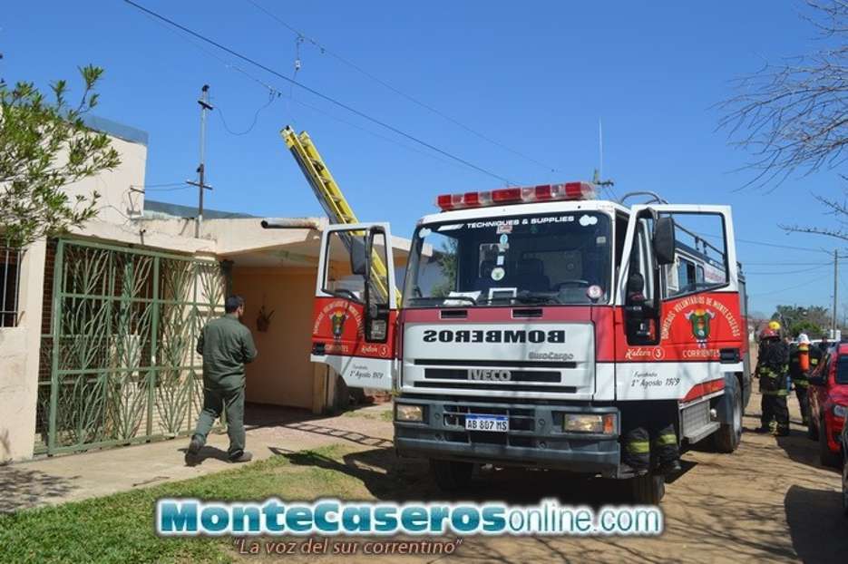 Bomberos Voluntarios de Monte Caseros acudieron a un principio de incendio en una vivienda ubicada en el Barrio Belgrano de nuestra ciudad.