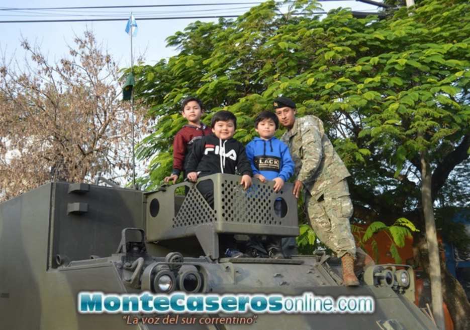 La Plazoleta Juan XXIII (Plaza del Niño) fue escenario de la actividad que comenzó a las 14:00 horas. Allí, fueron puestos en exposición armamentos, y vehículos de la institución para que las familias que acompañaron pudieran fotografiarse, los más entusiastas fueron los niños que indagaron y posaron para las cámaras. Hubo espacios destinados a la proyección de diversos films, se recordó también, en un sector especial a los Héroes de Malvinas y fue la Banda Militar Humaitá la que le puso música ...