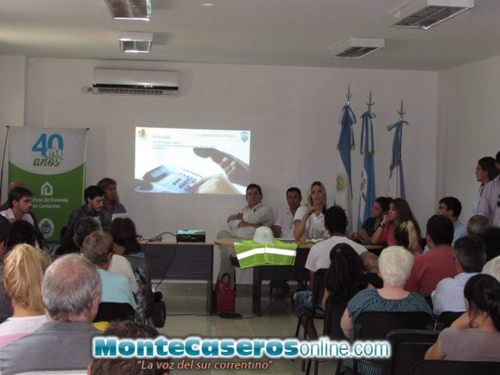 El equipo del Instituto de la Vivienda de Corrientes visitó Monte Caseros y realizó una reunión informativa con los beneficiarios de las 50 viviendas, este martes 19 de marzo, en las instalaciones del Ministerio de Desarrollo. Del encuentro también participaron las empresas de aguas y energía eléctrica, al igual que el municipio para realizar un trabajo articulado de instituciones.