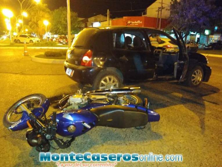 Un automóvil y una motocicleta se vieron implicados en un accidente de tránsito, el hecho sucedió en horas de la noche del domingo, aproximadamente a las 22:50 horas, en la esquina de Eva Duarte de Perón y Salta.