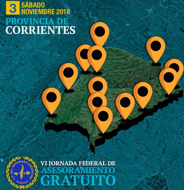 En la provincia de Corrientes, todas las ciudades están adheridas a la jornada. En Monte Caseros la misma se desarrollará en la Plazoleta Juan XXIII, el sábado 3 de noviembre de 10:00 a 12:00hs. Allí los profesionales les brindarán información y asesoramiento en Donaciones y Testamentos, Fidecomiso, Compra Venta de Inmuebles, Protección de la Vivienda Familiar, Uniones Convencionales, Planificación Sucesoria, Empresa Familiar, Autorizaciones a Menores para Viajar, Autorizacione...