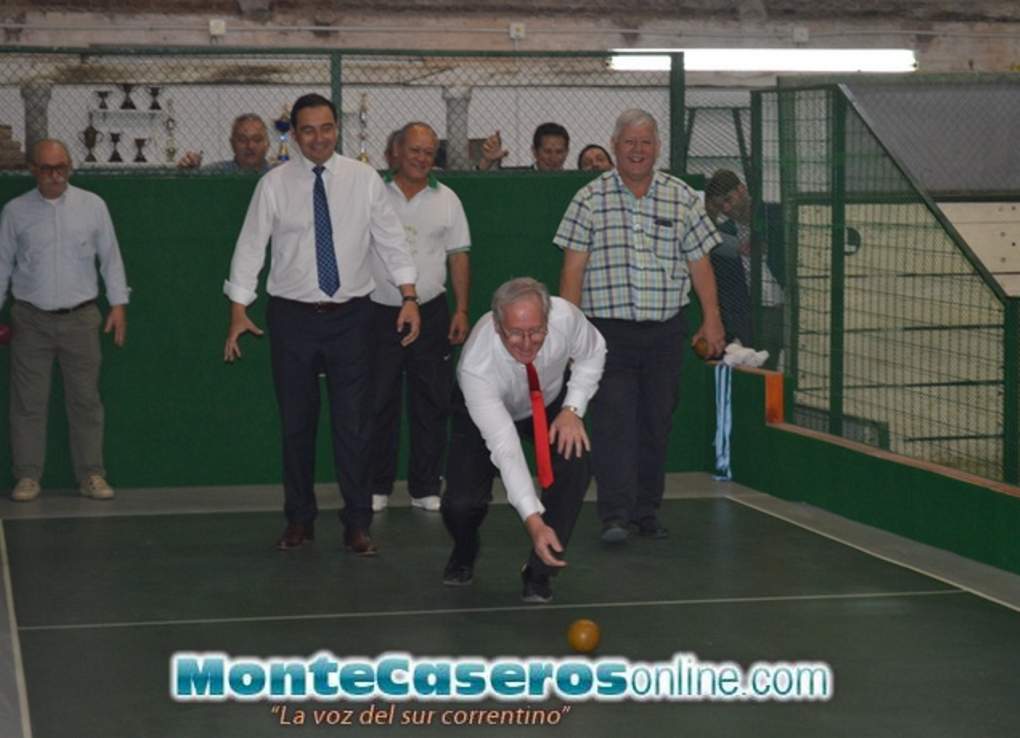 El Gobernador de la Provincia, Gustavo Valdés, acompañado por el Intendente, Miguel Olivieri, y el Presidente del Club Barrio Nuevo, Luis Bigolio, con un breve acto inauguró la cancha sintética de bochas, la primera en Monte Caseros.