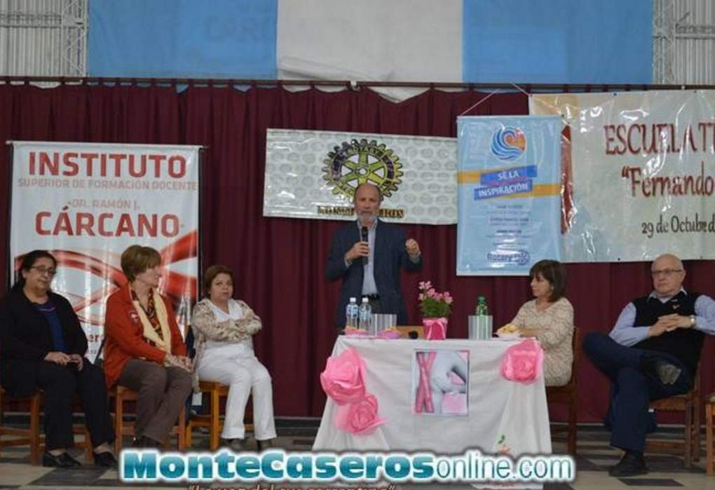 En presencia de un importante número de personas, en las instalaciones del Instituto Superior de Formación Docente “Dr. Ramón J. Cárcano” en el marco de el ”Proyecto Octubre Rosa”, este lunes 01 de octubre el Dr. Batagelj acompañado en la mesa principal por integrantes del Rotary Club brindó una charla sobre el Cáncer de Mama: Mitos y Realidades, Importancia de la Detección Precoz.