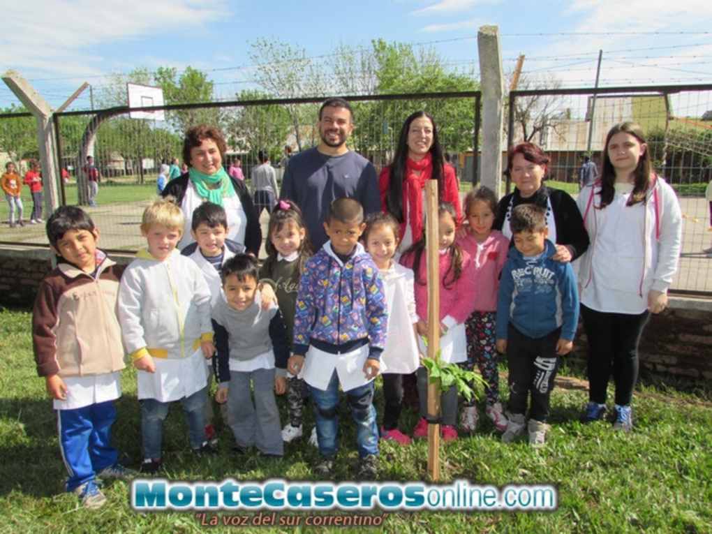 En las instalaciones de la Escuela Nº 347 “Tres de Abril” de la 308 viviendas, a las 10:00hs se realizó la plantación de los primeros ejemplares autóctonos, a cargo de la Ingeniera Agrónoma Lucía Ponce de León, representante de la Dirección de Recursos Forestales de la provincia junto al Secretario de Medio Ambiente de la Municipalidad de Monte Caseros, Dante Morel.