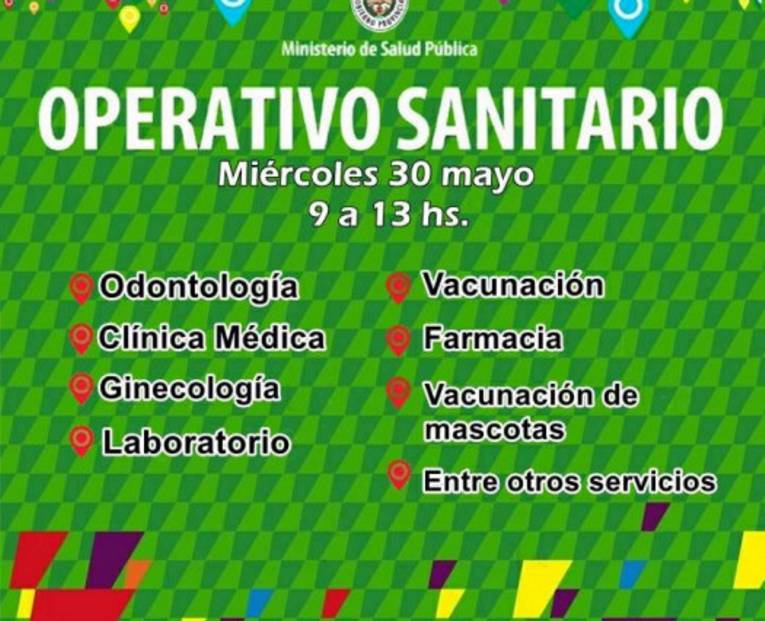 Este miércoles 30 de mayo, la Secretaria de Desarrollo Humano recibirá en sus instalaciones, al programa "OPERATIVO SANITARIO" del Ministerio de Salud Pública de la Provincia de Corrientes. Dicho operativo se realizará por la mañana, entre las 09:00 y las 13:00 horas, en El Maestro y Belgrano (Edif. Del CIC), de la Ciudad de Monte Caseros.
