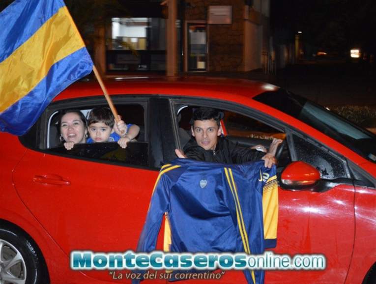 Hinchas montecasereños recorrieron la calle céntrica de la ciudad festejando el bicampeonato del “Xeneize”.