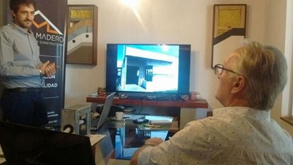 Los funcionarios fueron recibidos por el Arquitecto Eugenio Siri y su equipo de trabajo, quienes, exhibieron planos de viviendas y contaron sobre la técnica constructiva que utilizan.